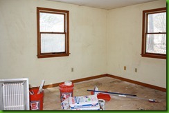 First, we scrubbed the walls with bleach, and then with TriSodium Phosphate, to clean and prepare the surface for painting.